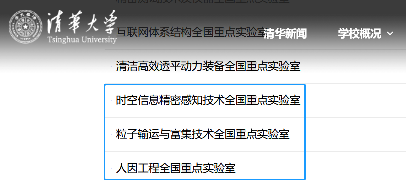 清華大學(xué)官網(wǎng)更新信息新增“時空信息精密感知技術(shù)全國重點(diǎn)實(shí)驗(yàn)室”、“粒子輸運(yùn)與富集技術(shù)全國重點(diǎn)實(shí)驗(yàn)室”、“人因工程全國重點(diǎn)實(shí)驗(yàn)室”。