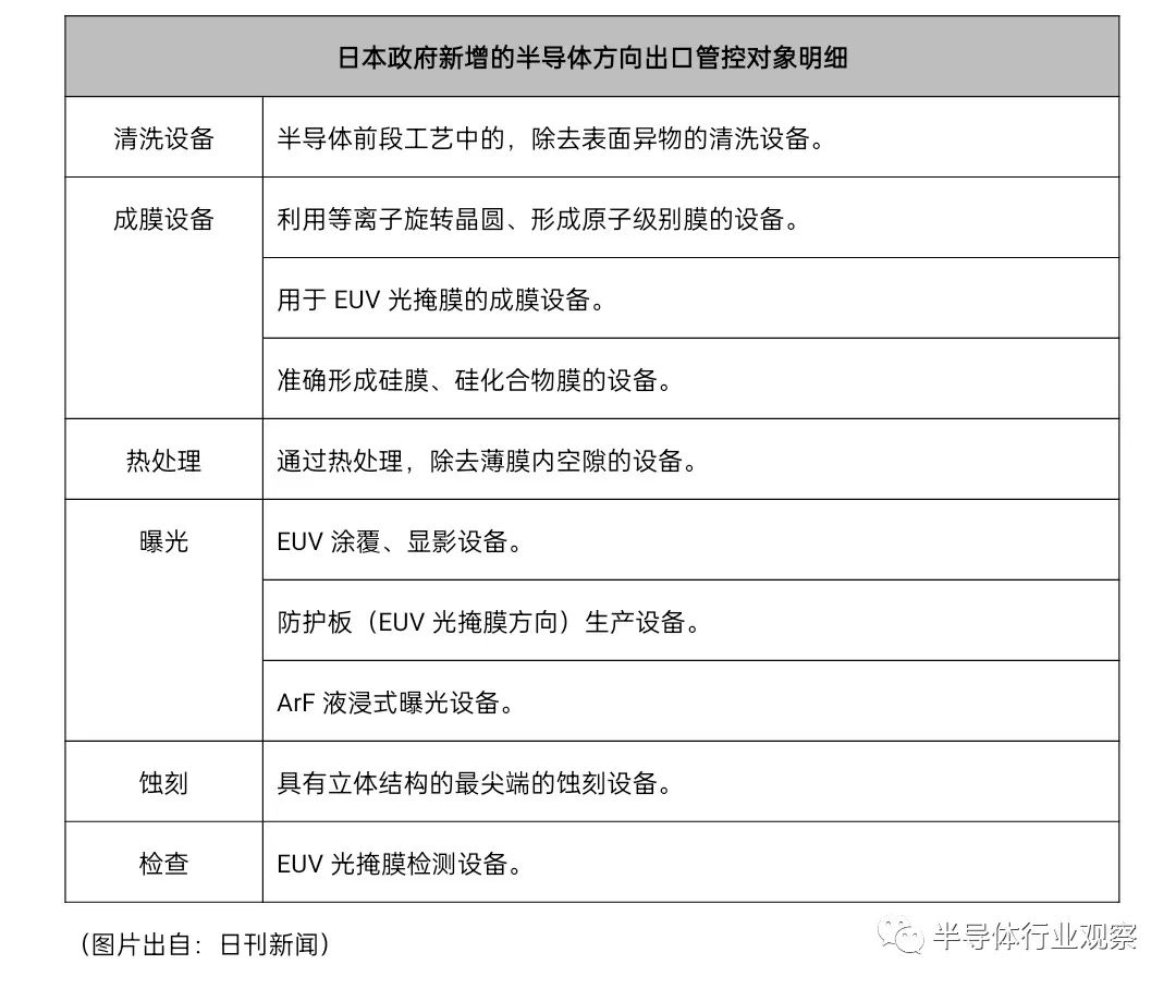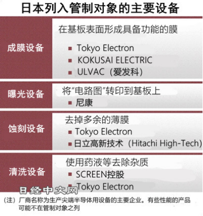 日本經(jīng)濟產(chǎn)業(yè)省發(fā)布的清單涉及清洗、成膜、熱處理、曝光、蝕刻、檢查等23個種類,包括極紫外(EUV)相關(guān)產(chǎn)品的制造設(shè)備和三維堆疊存儲器的蝕刻設(shè)備等。