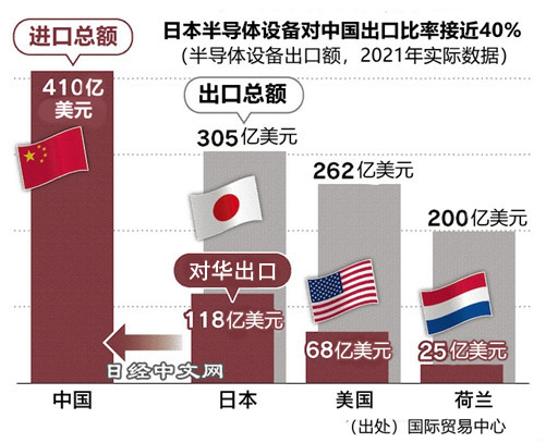 聯(lián)合國國際貿(mào)易中心的統(tǒng)計顯示,日本2021年向中國本土出口的制造設(shè)備達(dá)到約120億美元,金額占出口到全世界的設(shè)備的近4成,在所有地區(qū)中最高。出口額是美國對華設(shè)備出口的近2倍。