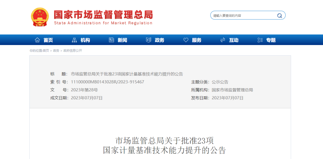 7月7日,國家市場監(jiān)督管理總局發(fā)布關(guān)于批準(zhǔn)23項國家計量基準(zhǔn)技術(shù)能力提升的公告,批準(zhǔn)“612nm波長基準(zhǔn)裝置”“表面粗糙度基準(zhǔn)裝置”等23項國家計量基準(zhǔn)技術(shù)能力提升,頒發(fā)新的國家計量基準(zhǔn)證書,撤銷相應(yīng)的原國家計量基準(zhǔn)證書。具體如下。