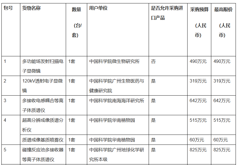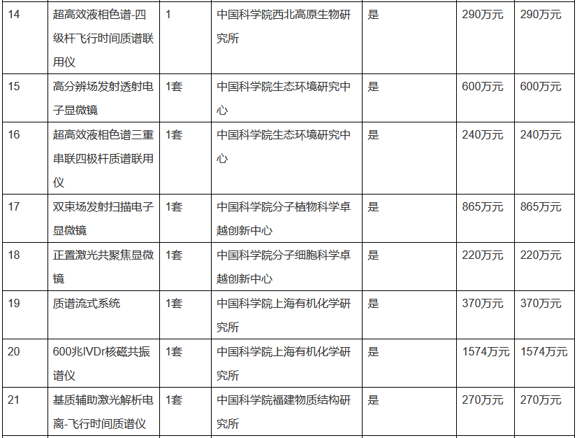 中科院發布2023年1.3億元儀器設備采購項目