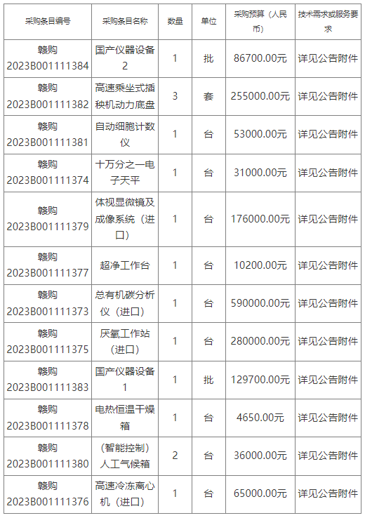 江西農(nóng)業(yè)大學(xué)總有機(jī)碳分析儀等進(jìn)口及國產(chǎn)儀器設(shè)備采購項(xiàng)目 招標(biāo)項(xiàng)目的潛在投標(biāo)人應(yīng)在 江西省公共資源交易網(wǎng)(網(wǎng)址:https://www.jxsggzy.cn/web/) 獲取招標(biāo)文件,并于 2024年02月07日 14點(diǎn)00分 (北京時間)前遞交投標(biāo)文件。