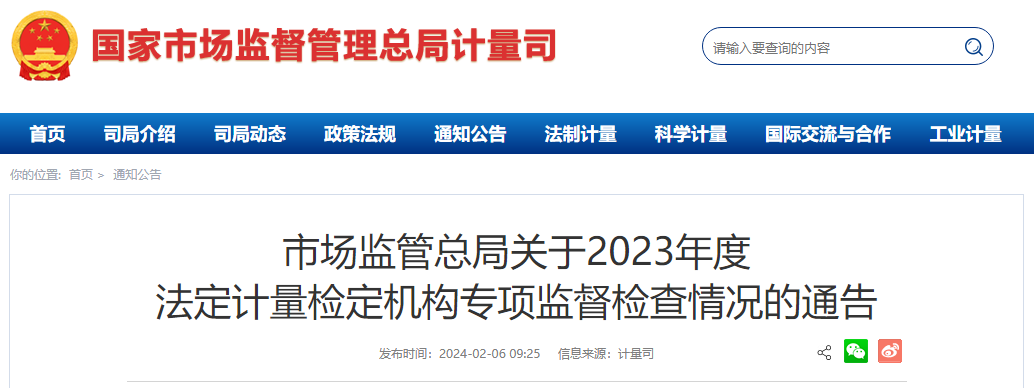市場監(jiān)管總局關(guān)于2023年度法定計量檢定機(jī)構(gòu)專項監(jiān)督檢查情況的通告