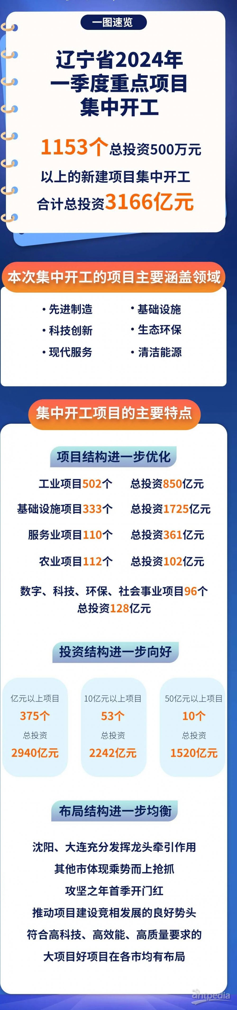 3月18日上午,遼寧省舉行2024年一季度重點(diǎn)項(xiàng)目集中開工活動(dòng)。此次共1153個(gè)總投資500萬元以上的新建項(xiàng)目集中開工,合計(jì)總投資3166億元,涵蓋了先進(jìn)制造、科技創(chuàng)新、現(xiàn)代服務(wù)、基礎(chǔ)設(shè)施、生態(tài)環(huán)保、清潔能源等多個(gè)領(lǐng)域。