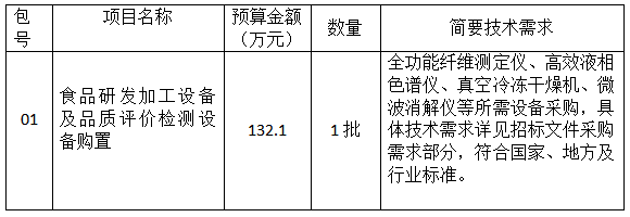 食品研發加工設備及品質評價檢測設備購置公開招標公告