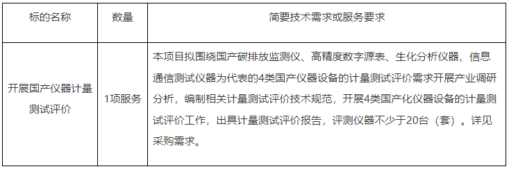 開展國產儀器計量測試評價公開招標公告