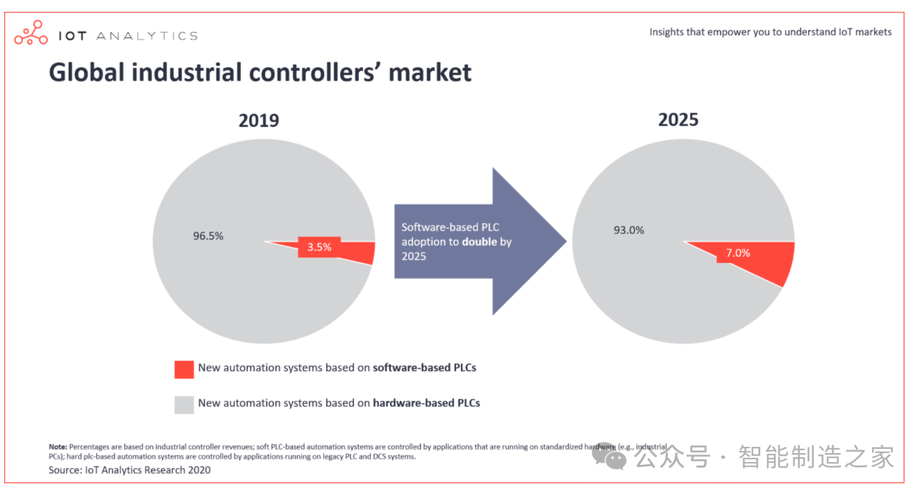 軟PLC作為自動化領(lǐng)域的新星,正逐漸受到工業(yè)生產(chǎn)的青睞,特別是在日益定制化和復(fù)雜化的生產(chǎn)需求背景下。軟PLC通過將硬PLC的功能集成到軟件包中,運行于通用工控電腦上,形成了高性能的可編程自動化控制器(PAC)。其優(yōu)越之處在于,它能夠根據(jù)具體應(yīng)用進(jìn)行定制開發(fā),實現(xiàn)復(fù)雜的控制邏輯,并利用PC的強大力量和多樣化的軟件資源,達(dá)成更快速、精確的控制效果。盡管短期來看,硬PLC的市場份額因用戶習(xí)慣和風(fēng)險規(guī)避心理難以被迅速取代,但從長遠(yuǎn)看,軟PLC市場份額預(yù)計將持續(xù)增長。據(jù)預(yù)測,到2025年,基于軟PLC的自動化系統(tǒng)占比將翻番。