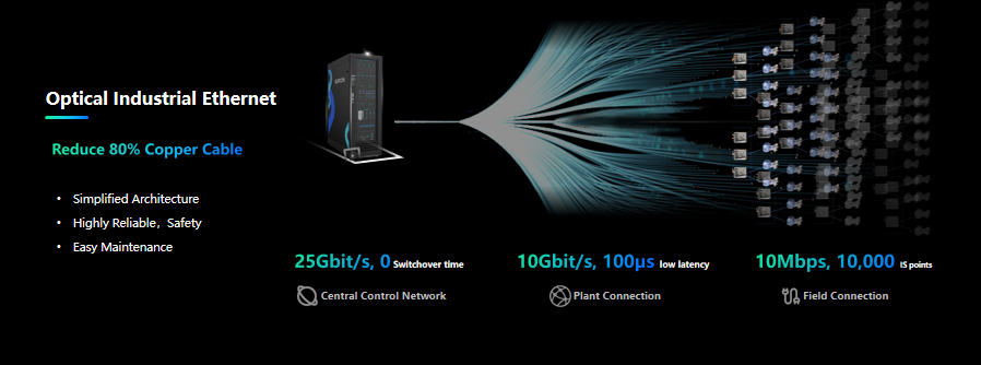 Nyx采用全光工業(yè)網(wǎng)絡(luò),智能現(xiàn)場(chǎng)數(shù)據(jù)以10Gbps速度和并行冗余方式直達(dá)控制數(shù)據(jù)中心,打造極簡(jiǎn)的網(wǎng)絡(luò)架構(gòu),節(jié)省電纜和空間90%以上。