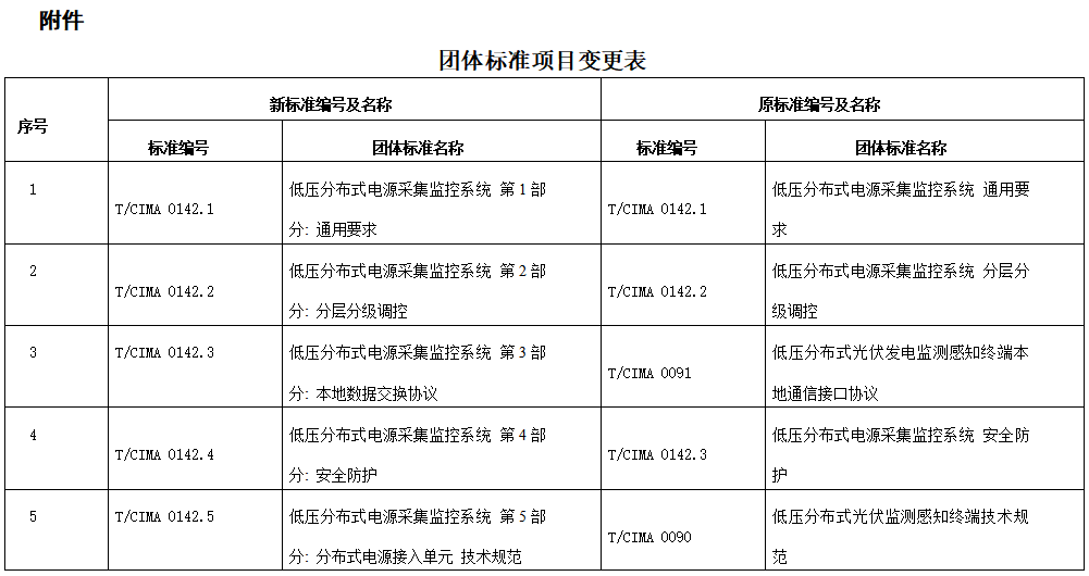 根據(jù)電工儀器儀表分會提交的《關于將系列團體標準<低壓分布式電源采集監(jiān)控系統(tǒng)>重新編號、修改名稱的申請》,經(jīng)研究,該申請符合協(xié)會團體標準管理辦法及細則,修改后有利于完整體現(xiàn)編制目的,有利于滿足標準使用者的不同需求,同意重新編號和修改名稱。