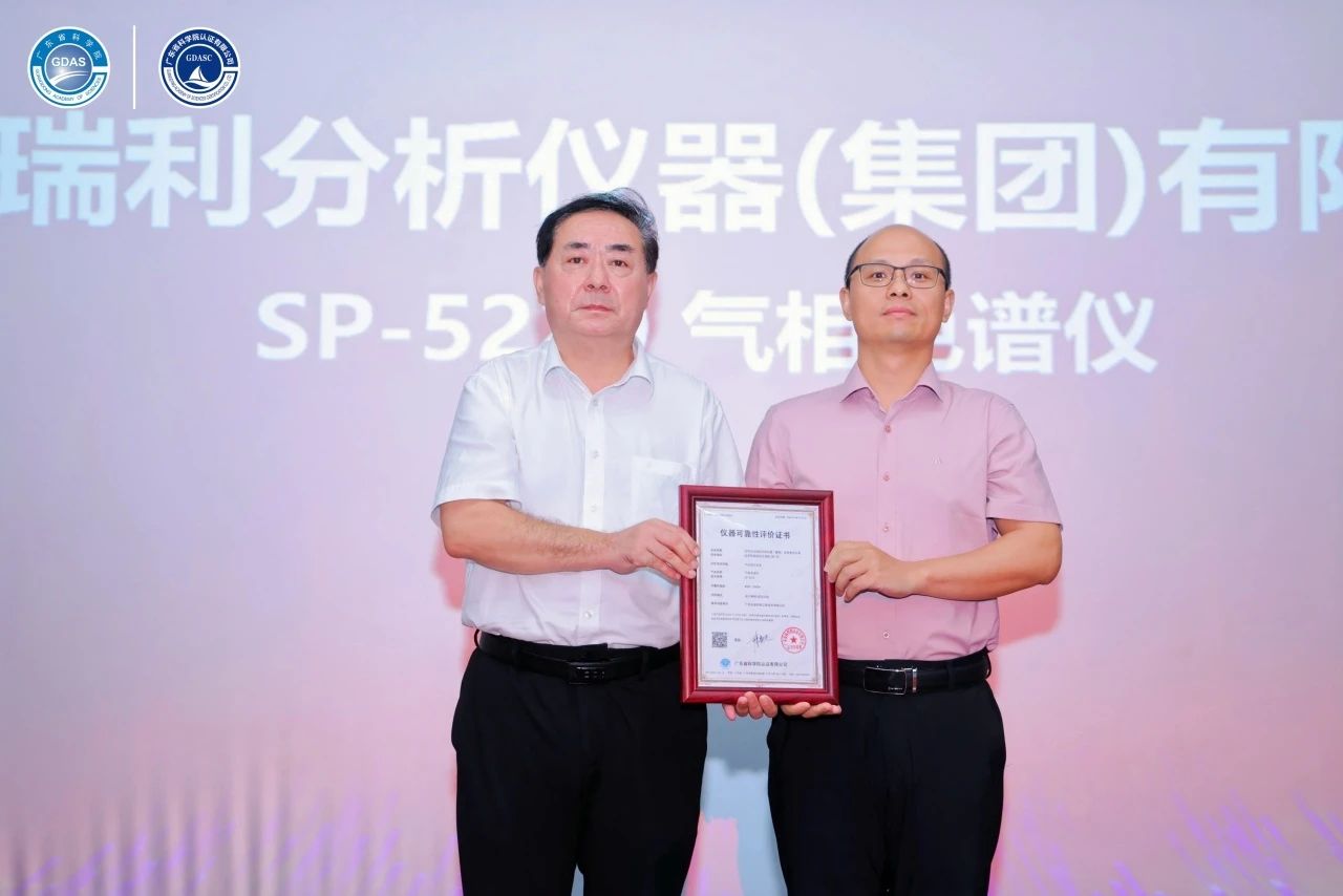 活動現(xiàn)場,廣東省科學院黨委書記廖兵為獲得首批產(chǎn)品認證、鑒定評價證書的9家企業(yè)頒發(fā)證書,為企業(yè)完善產(chǎn)品和提升市場競爭力賦能。北京北分瑞利分析儀器(集團)有限責任公司SP-5220氣相色譜儀產(chǎn)品獲得此項殊榮,公司副總經(jīng)理周加才參加本次活動并上臺領獎。