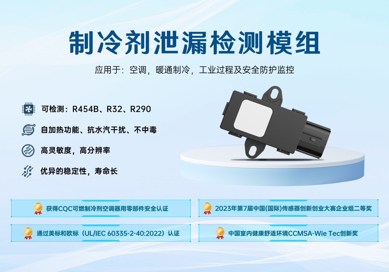 此次獲得的國際合作項目證書的ZRT510產(chǎn)品,是一款采用非分散紅外(NDIR)原理對制冷劑進行檢測的傳感器模組。模組采用多氣體補償算法,實現(xiàn)多氣體濃度檢測(R454B/R32/R290),并搭載溫度、濕度、壓力多維補償機制。為方便用戶應(yīng)用,產(chǎn)品還可對結(jié)構(gòu)件、硬件、軟件進行定制,實現(xiàn)不同項目需求。