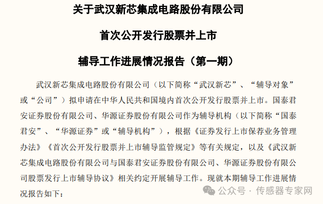 2024年5月,武漢新芯與國泰君安、華源證券簽署上市輔導(dǎo)協(xié)議,截止2024年7月11日,已完成第一期上市輔導(dǎo)工作。