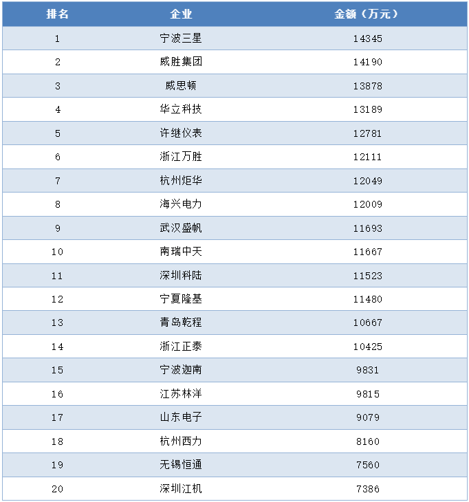 國網2024_2批次電能表和用電信息采集項目中標金額前二十企業