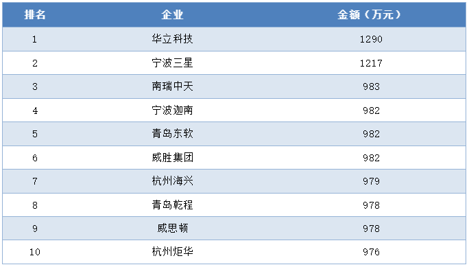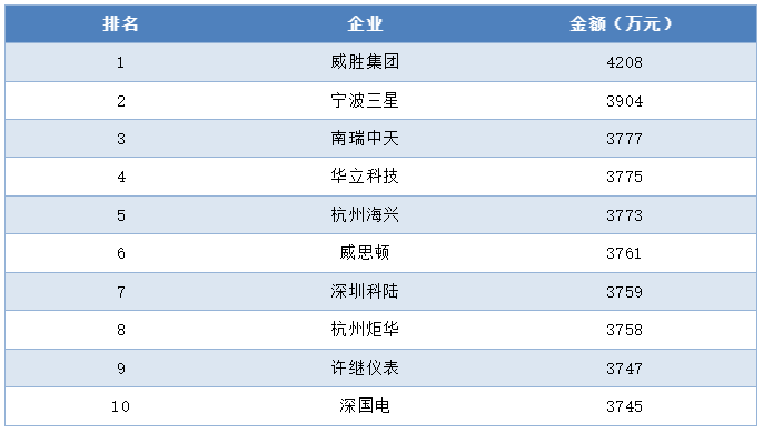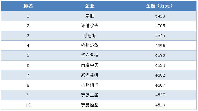 總共有73家企業實現中標,其中電能表分項中標企業共68家,相比2024年第一次招標減少2家。本次中標金額前五名企業為寧波三星醫療電氣股份有限公司、威勝集團(含威勝控股、威勝信息)、煙臺東方威思頓電氣有限公司、華立科技股份有限公司、河南許繼儀表有限公司。