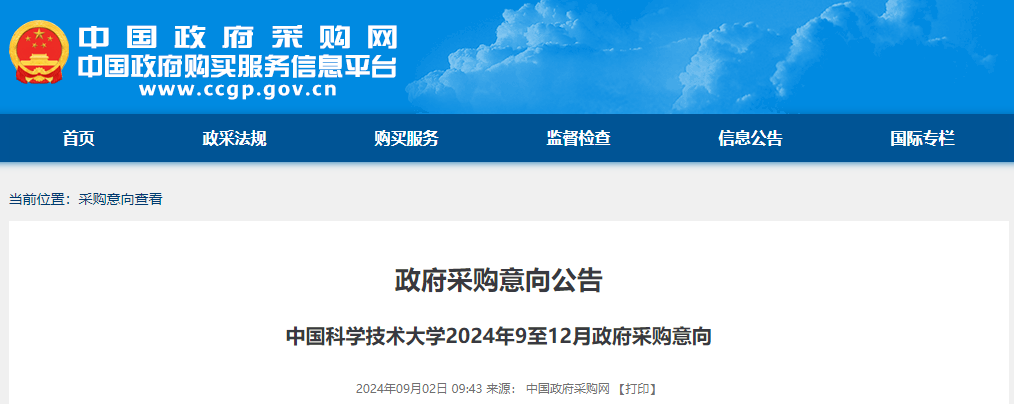 中國(guó)科學(xué)技術(shù)大學(xué)2024年9至12月政府采購(gòu)意向