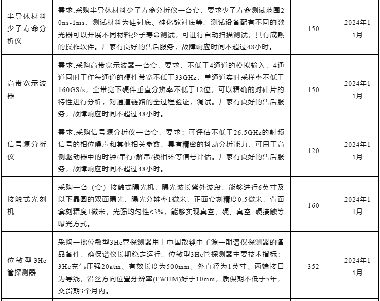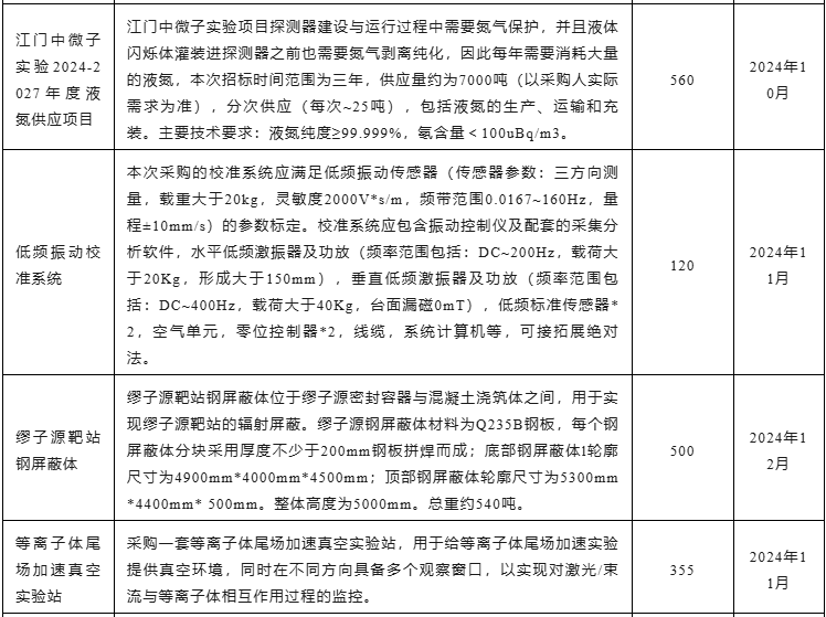 近日,中國科學(xué)院高能物理研究所發(fā)布25項儀器設(shè)備采購意向,預(yù)算總額達0.98億元,涉及CSNS-II逆幾何分子振動譜儀分析晶體、高速細線楔形鍵合機、背散射譜儀束線前端鋼屏蔽體、X射線大視場平板成像探測器等,預(yù)計采購時間為2024年10月~2025年1月。