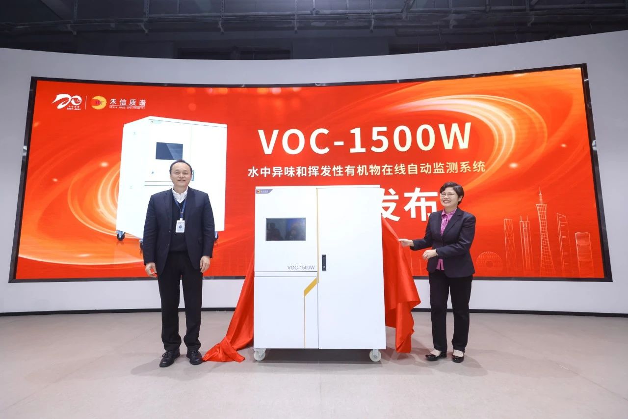 發(fā)布會上,廣東省城鎮(zhèn)供水協(xié)會專家委員會副主任董玉蓮、禾信儀器總經(jīng)理徐向東先生共同為VOC-1500W水中異味和揮發(fā)性有機物在線自動監(jiān)測系統(tǒng)揭幕。