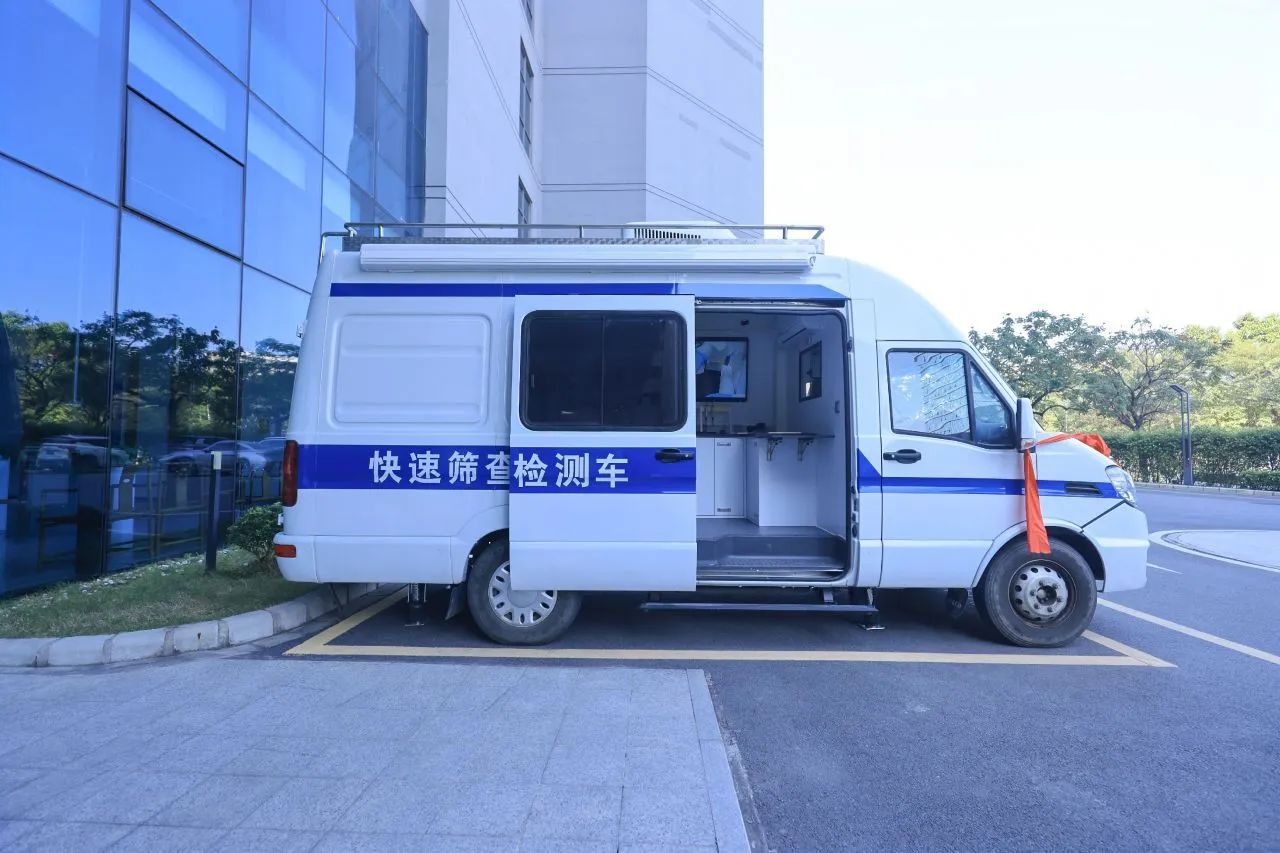 TAPI-TOF 1000M1快速篩查質譜移動檢測車也在主持人的宣布下露出真容,等候在展廳門外供來賓近距離參觀體驗。