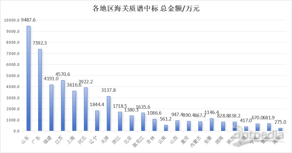根據截至1230日的公開中標信息,不完全統計顯示,全國共有23個省、直轄市、自治區的72個海關相關單位參與了質譜儀的采購,共采購了288臺套質譜儀器,中標總金額達到5.2億元人民幣。