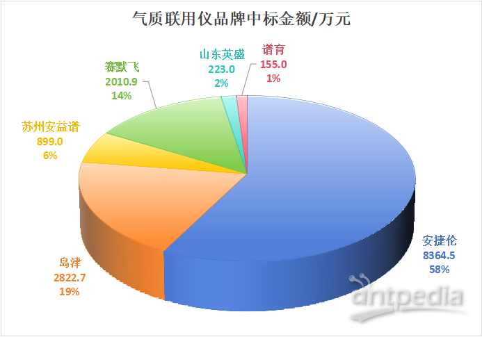 島津也表現出色,共中標19臺,中標金額為2822.7萬元。其GCMS-QP2020 NX、GCMS-TQ8040 NXGCMS-TQ8050 NX三款產品分別中標7臺套、6臺套和6臺套。