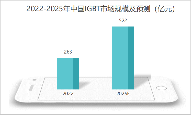 隨著國(guó)產(chǎn)替代的加速,預(yù)計(jì)2022到2025年中國(guó)IGBT市場(chǎng)規(guī)模有望從263億增長(zhǎng)到522億,年復(fù)合增長(zhǎng)率超過(guò)25%。