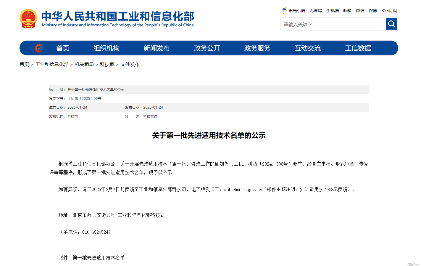 廣五所公司一項技術入選工信部第一批先進適用技術名單