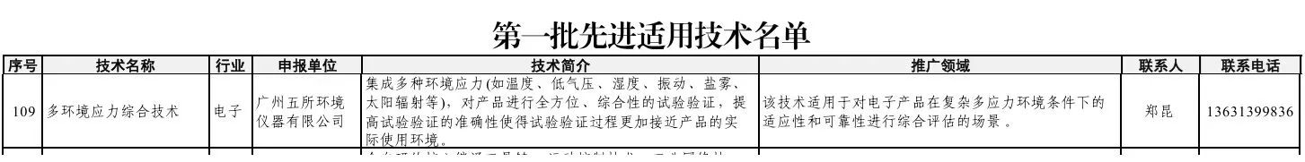 近日,廣五所公司自主研發的多環境應力綜合技術成功入選工業和信息化部第一批先進適用技術名單(全國僅111項)。標志著我公司在環境試驗設備領域的技術創新實力再獲權威認可!