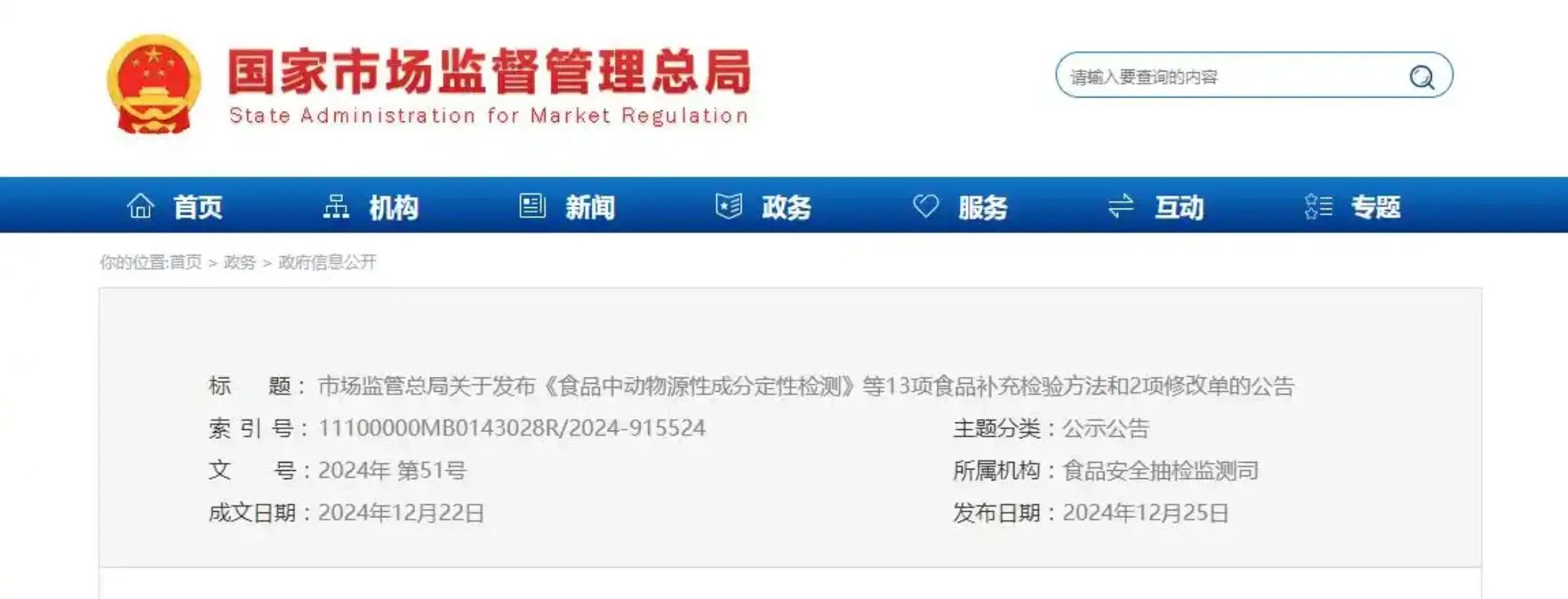 市場監管總局關于發布《食品中動物源性成分定性檢測》