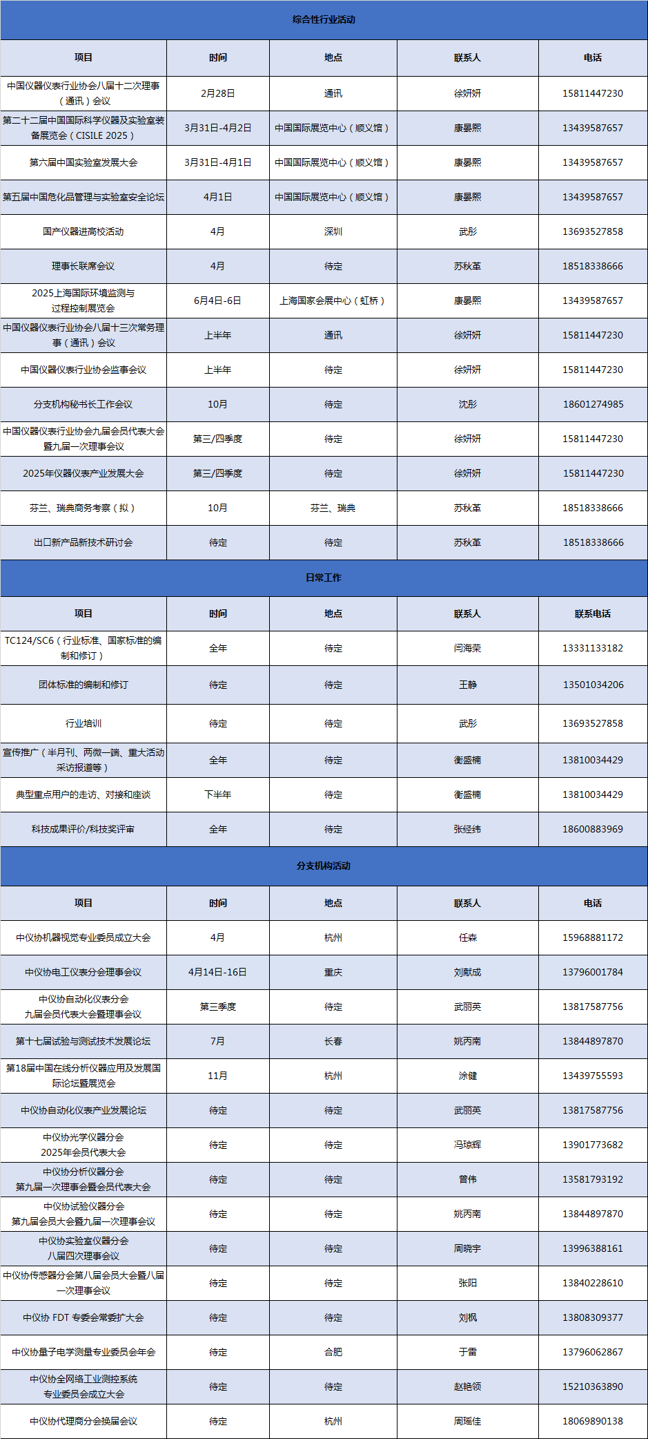 中國儀器儀表行業協會2025年主要工作及活動計劃