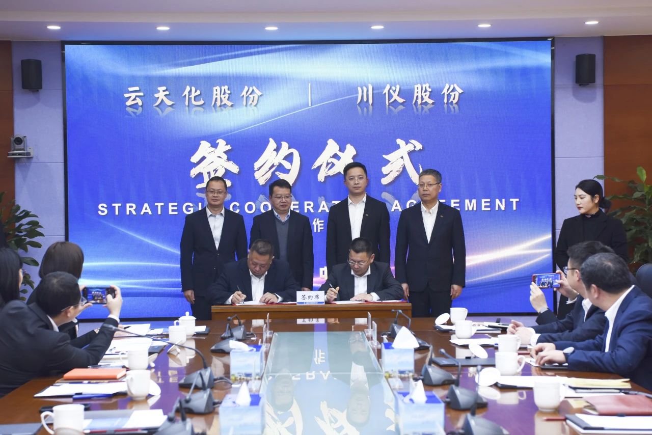 近日,重慶川儀自動化股份有限公司(以下簡稱川儀股份)黨委副書記、總經理吳正國率隊拜訪云南云天化股份有限公司(以下簡稱云天化股份)。云天化股份黨委副書記、總經理王宗勇對吳正國一行的來訪表示歡迎,雙方圍繞各自企業的基本情況、發展歷程、業務領域等進行了深入交流,吳正國、王宗勇分別代表兩家企業簽署戰略合作協議。