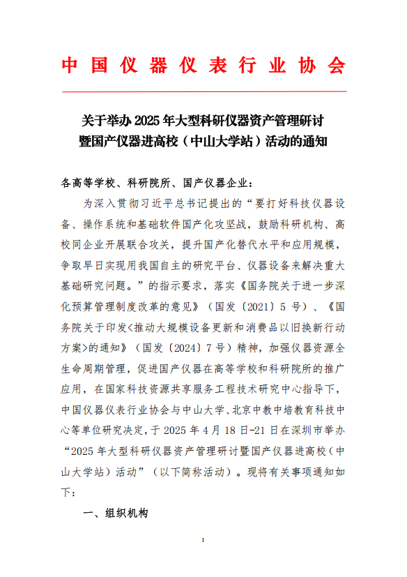 關于舉辦2025年大型科研儀器資產管理研討暨國產儀