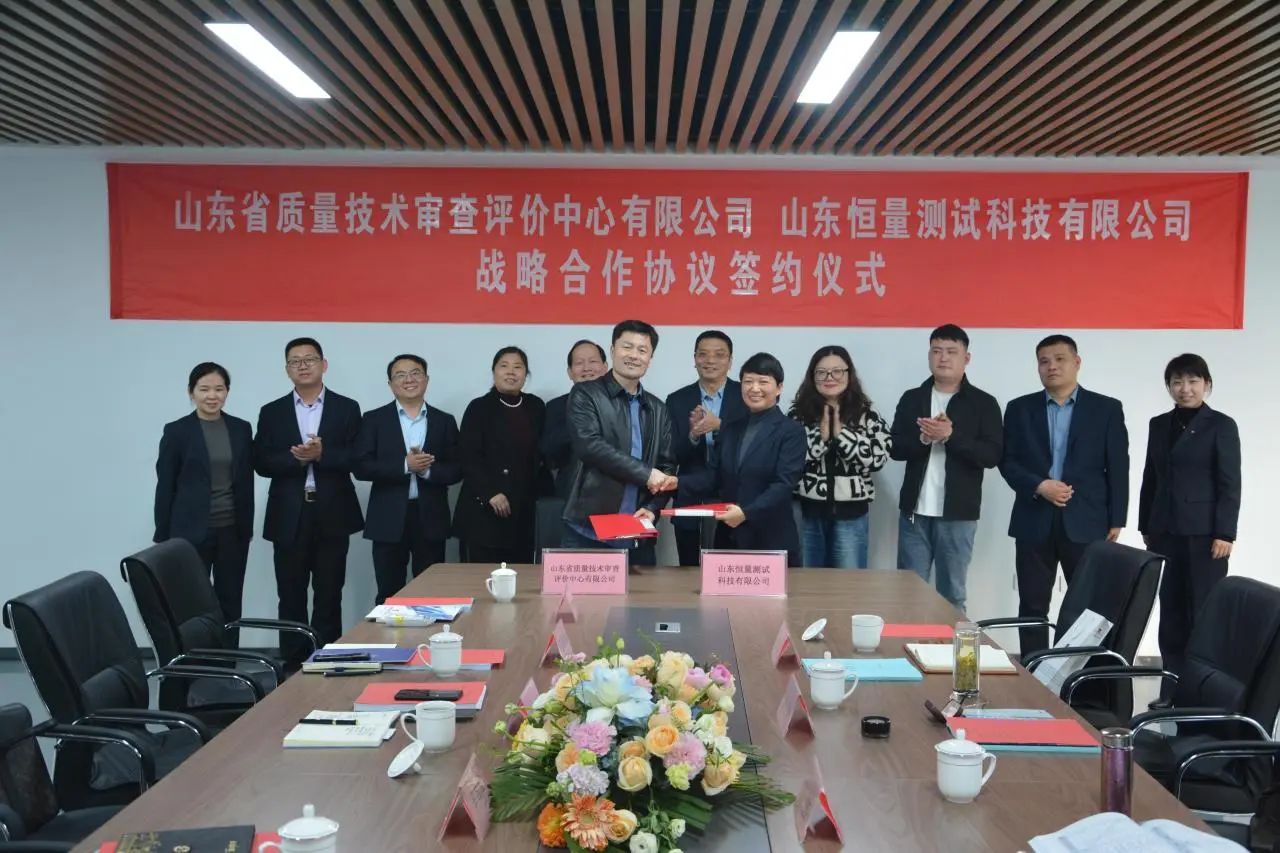 3月11日下午,山東省質(zhì)量技術(shù)審查評(píng)價(jià)中心有限公司黨委書(shū)記、總經(jīng)理汪立新一行蒞臨山東恒量測(cè)試科技有限公司,與總經(jīng)理岳宗龍進(jìn)行了深度交流。雙方基于對(duì)行業(yè)發(fā)展的共同愿景,充分探討了合作的新機(jī)遇與新方向,并順利簽署戰(zhàn)略合作協(xié)議。