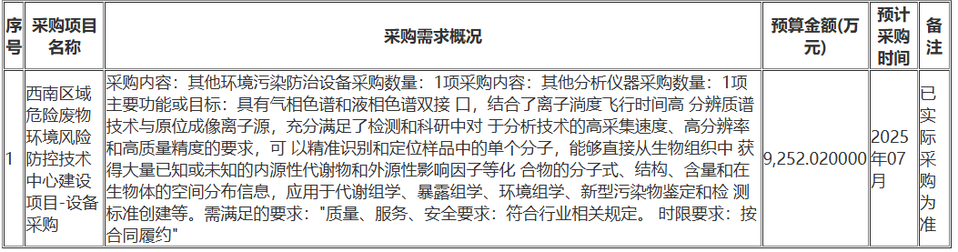 9252萬,四川生態(tài)環(huán)境科學(xué)院2025年度政采意向