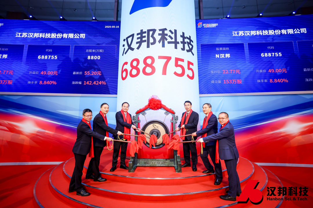516日,國內色譜分離純化裝備領先江蘇漢邦科技股份有限公司(股票簡稱漢邦科技,股票代碼“688755”)登陸正式資本市場。