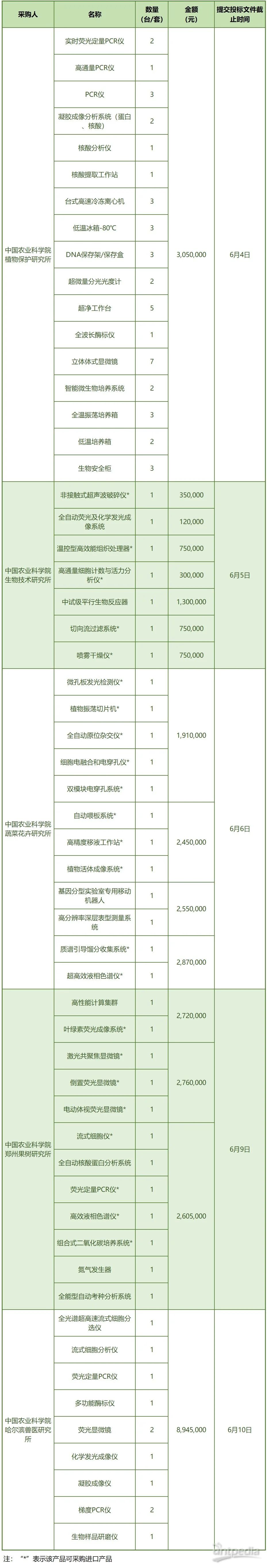 近日,中國農(nóng)業(yè)科學(xué)院旗下多個研究所發(fā)布了儀器設(shè)備招標(biāo)公告,包括果樹瓜類研究、人獸共患病病原研究、農(nóng)業(yè)微生物智能設(shè)計(jì)與合成、農(nóng)業(yè)生物安全科學(xué)等多個方向,預(yù)算總金額3418萬元,涵蓋多種先進(jìn)的科研儀器設(shè)備,如PCR儀、核酸分析儀、超高效液相色譜儀、激光共聚焦顯微鏡等,其中有部分可采購進(jìn)口產(chǎn)品。