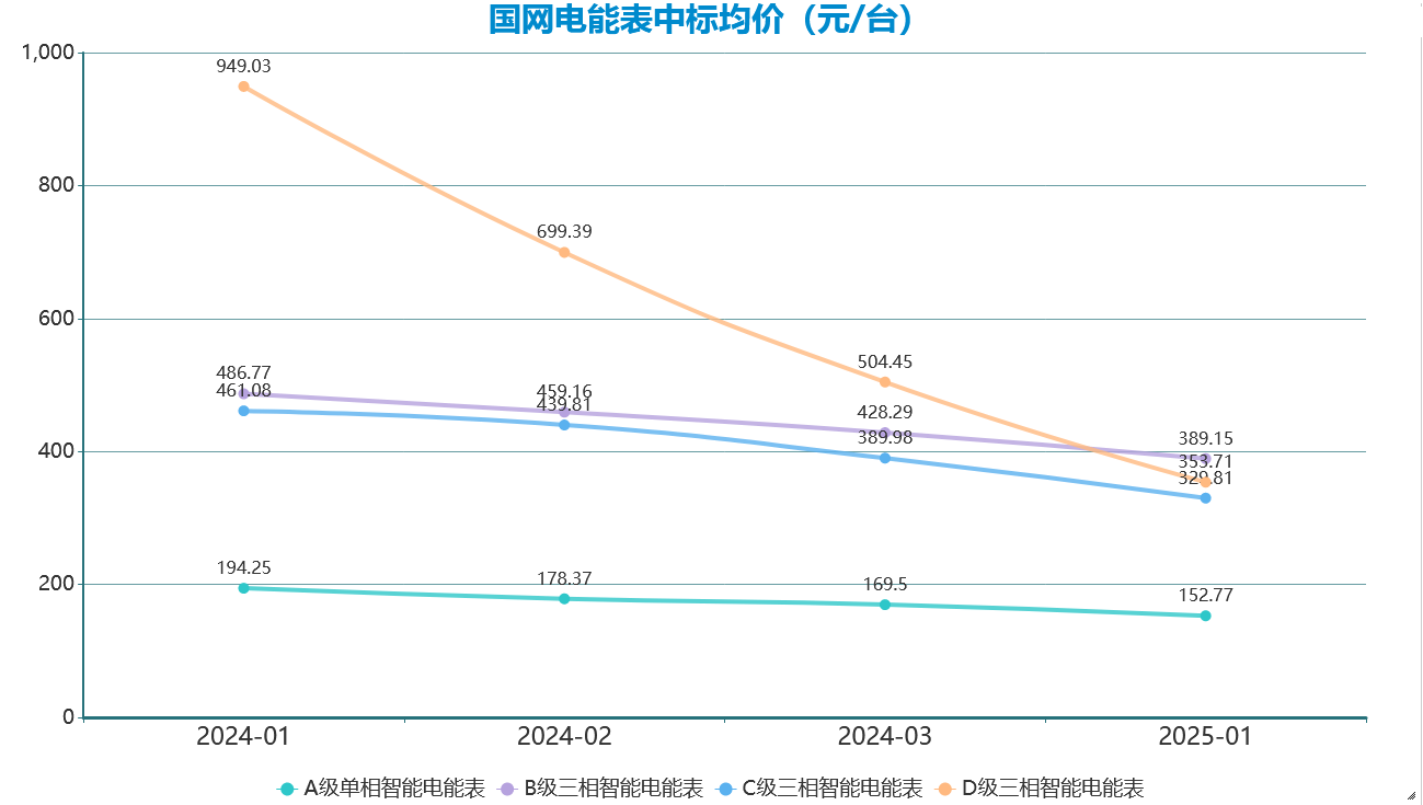 值得關注的是,本批次電能表中標價格仍持續下行: