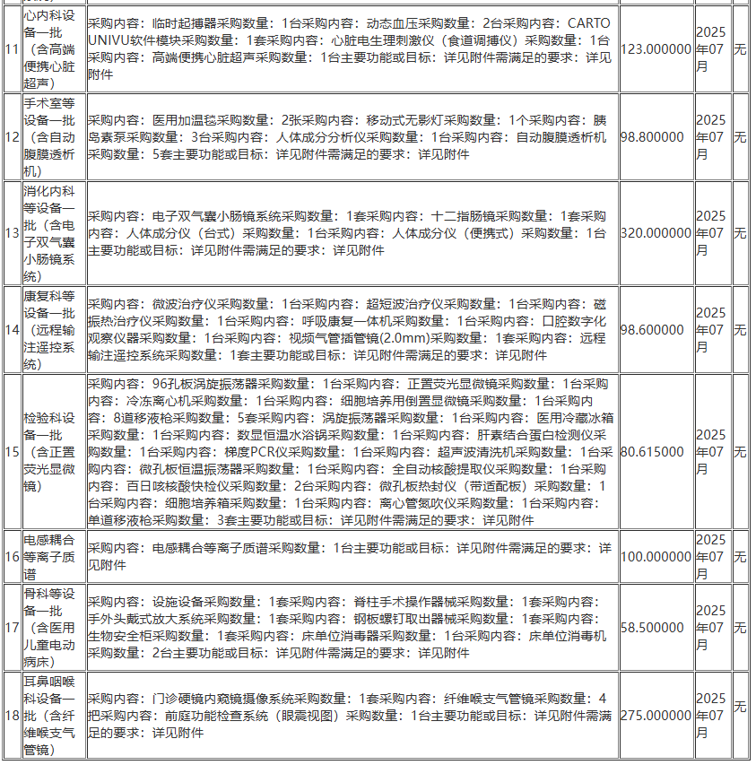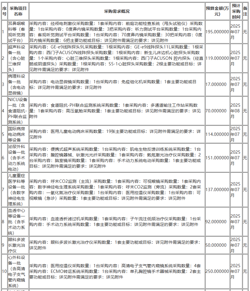 為便于供應商及時了解政府采購信息,根據《財政部關于開展政府采購意向公開工作的通知》(財庫〔2020〕10號)等有關規定,現將福建省兒童醫院2025年度(第19批)采購意向公開如下: