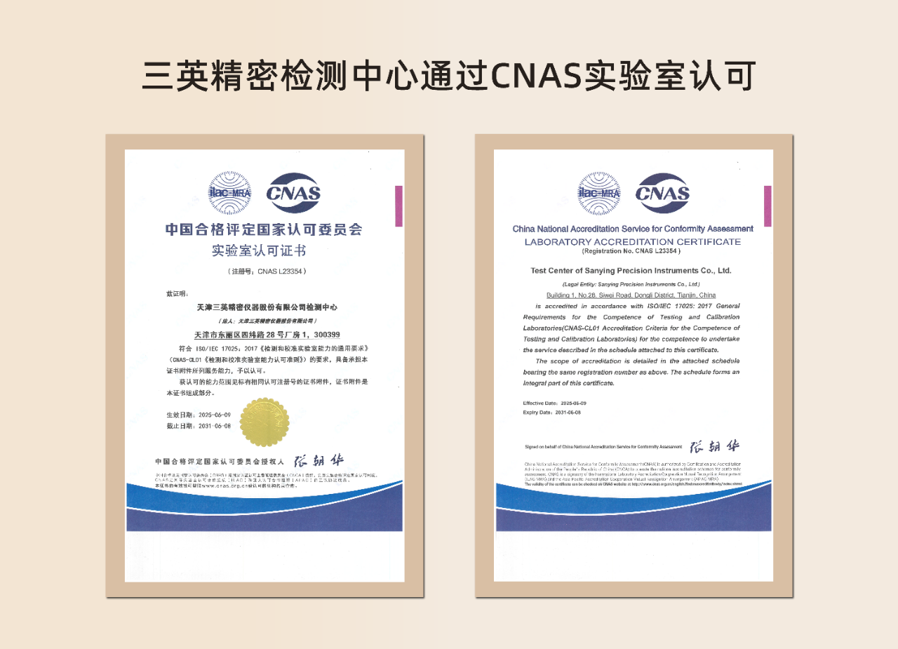近日,三英精密檢測技術(shù)再獲國家級認可!經(jīng)過嚴格評審,天津三英精密儀器股份有限公司檢測中心(以下簡稱三英精密檢測中心)成功通過中國合格評定國家認可委員會(CNAS)認證,正式獲得CNAS實驗室認可證書(注冊號:CNAS L23354)。這標志著三英精密的檢測能力、管理水平和技術(shù)實力達到國際標準,在無損檢測領(lǐng)域再添一枚“國字號”金字招牌!
