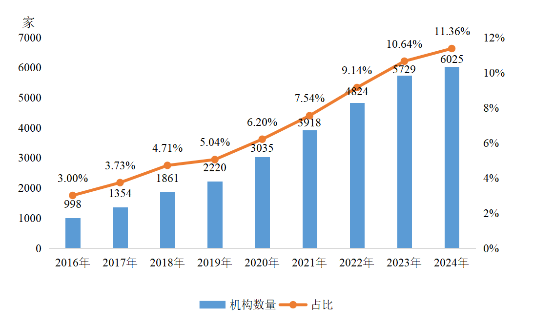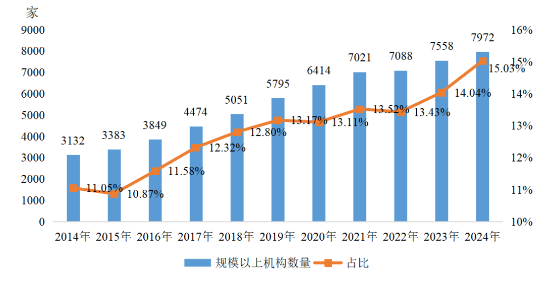 3-2 2014-2024年小型和微型檢驗檢測機構數量及占比情況