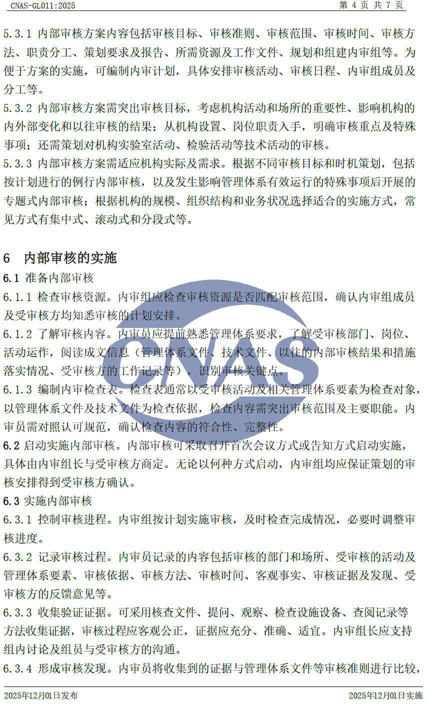 CNAS-GL011:2025 《實(shí)驗(yàn)室和檢驗(yàn)機(jī)構(gòu)內(nèi)部審核指南》與CNAS-GL011:2018相比,除結(jié)構(gòu)調(diào)整和編輯性改動(dòng)外,主要技術(shù)變化如下: